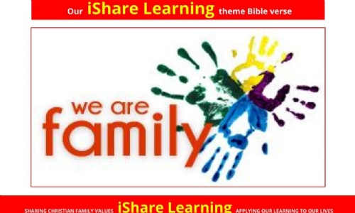 Our iShare Learning theme for the first half of the term is “We Are Family,” inspired by this Bible verse from 1 John: “How great is the love the Father has lavished on us, that we should be called children of God.”